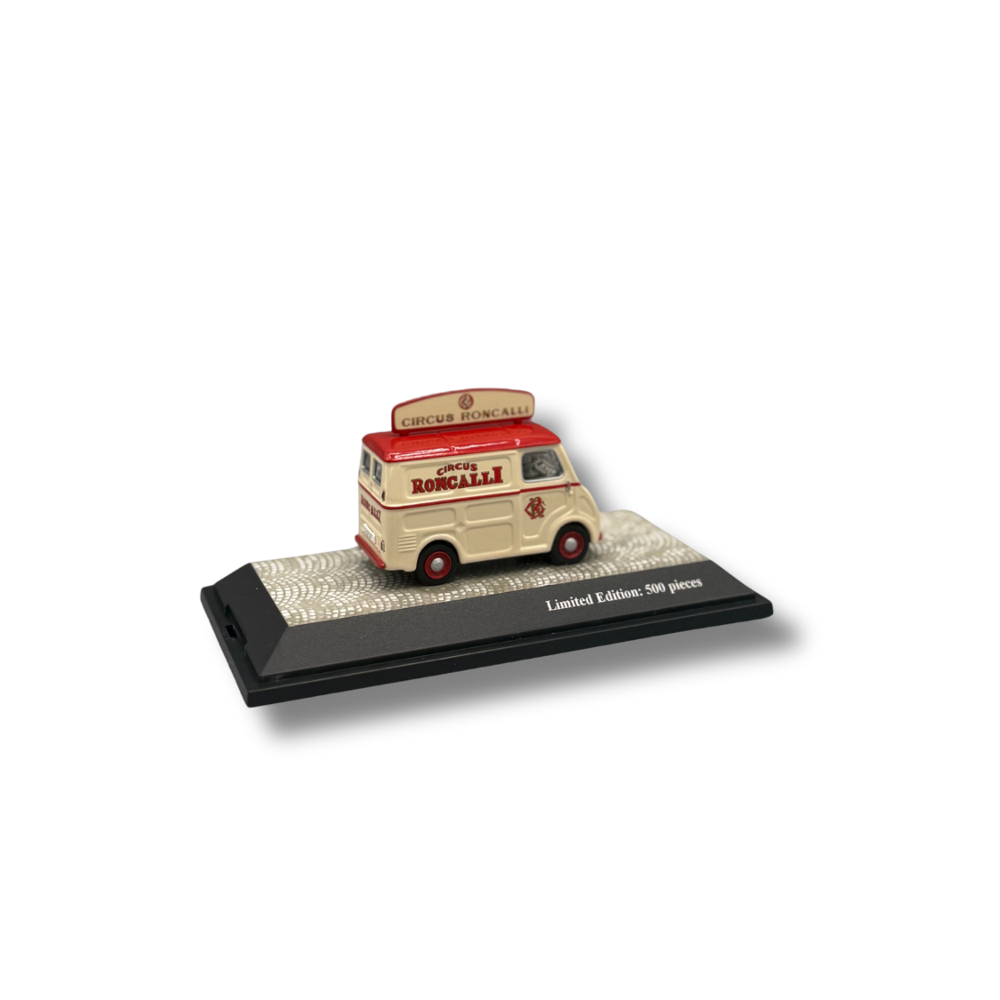 Das Modell überzeugt durch seine originalgetreue Lackierung in Creme-Rot, fein ausgearbeitete Details sowie das ikonische Roncalli-Branding. Präsentiert wird das Fahrzeug in einer hochwertigen Sammlerbox mit Sichtfenster und stabilem Sockel – ideal zur stilvollen Präsentation.