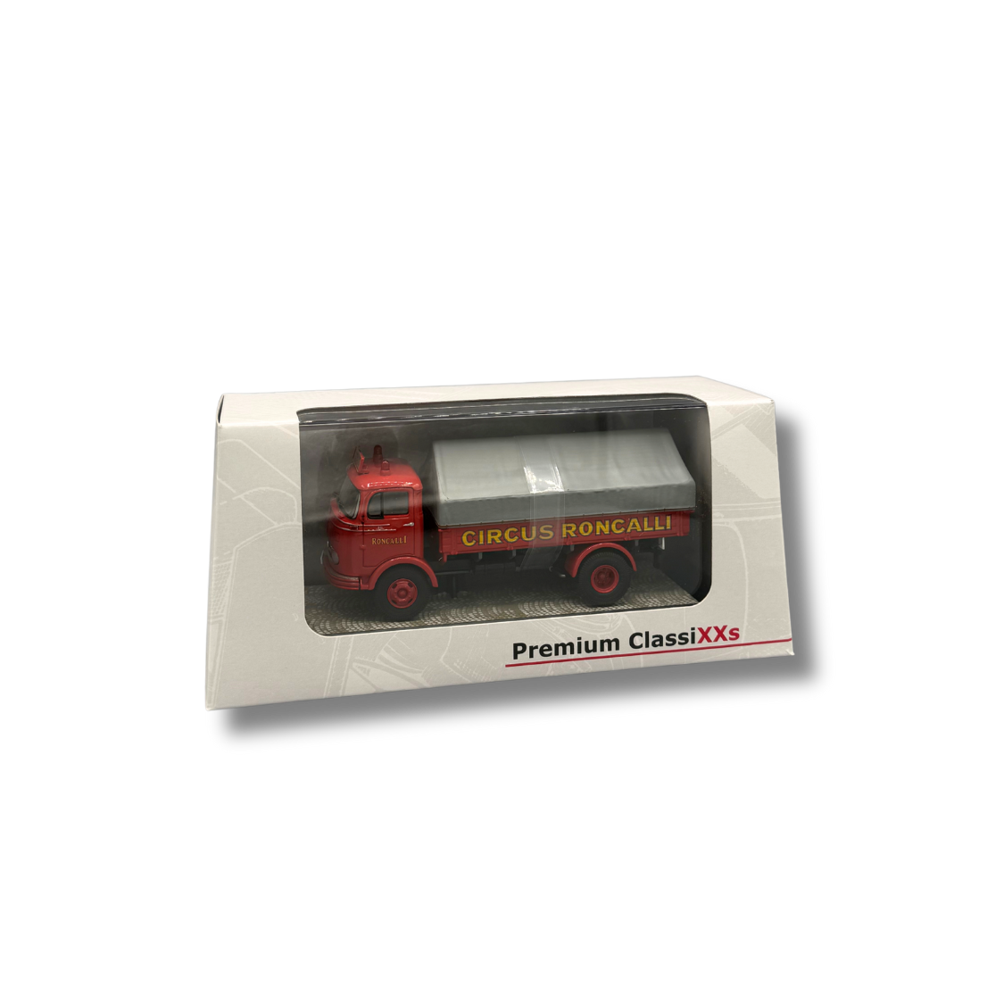 Gefertigt von Premium ClassiXXs, überzeugt das Modell durch detailgetreue Bedruckung, originalgetreue Farbgebung und eine hochwertige Präsentationsbox. Die Plane mit „Circus Roncalli“-Schriftzug sowie die klassische rote Lackierung machen dieses Sammlerstück zu einem besonderen Blickfang.